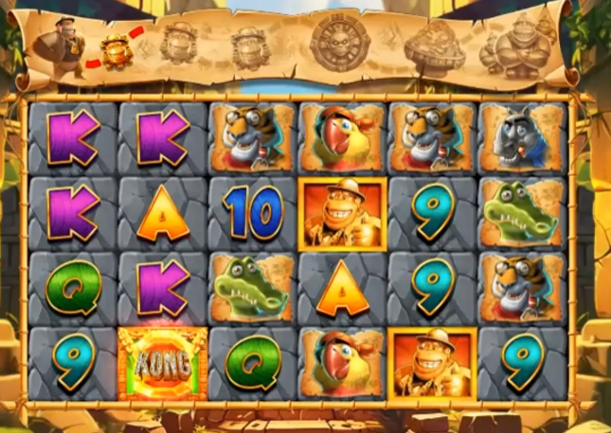 Land three or more Bonus Scatter symbols to trigger the Free Spins round. More scatters mean bigger instant cash prizes and a better starting position on the bonus trail. Progress on the trail to unlock features like Treasure Blitz and Super Kong Bonus Spins, each offering unique rewards and modifiers.