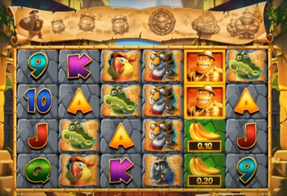 Kong 3 Even Bigger Bonus immerses players in a lush, vibrant jungle setting inspired by the legendary King Kong. The game’s visual design is bold and colorful, with detailed backgrounds featuring dense foliage, ancient ruins, and cascading waterfalls that set the stage for an epic adventure. The symbols on the reels are a mix of classic playing card icons and thematic characters, including gorillas, rhinos, tigers, and parrots, all rendered in a lively cartoon style that adds energy and personality to the gameplay.